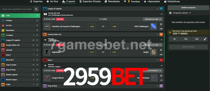 O 2959Bet oferece uma grande seleção de opções de apostas em e-sports com probabilidades competitivas
